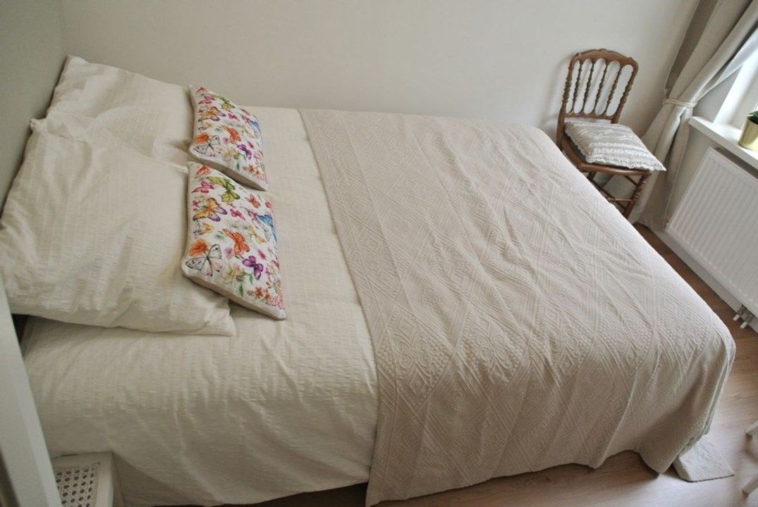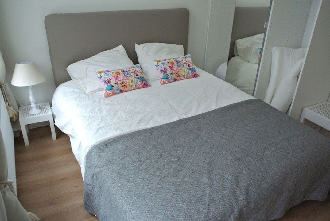 Entree op de 1e etage in de gang van het appartement, aan de rechterkant de ruime lichte woonkamer met open keuken en leuke eethoek, openslaande deuren naar het terras dat is gelegen op het zuiden, verder in de gang een apart toilet en deur naar de badkamer met dubbele wasbak, inloop douche en kast met daarin een was/droog combinatie, aan de voorzijde 2 ruime slaapkamers met 2 persoons bed en kastruimte.