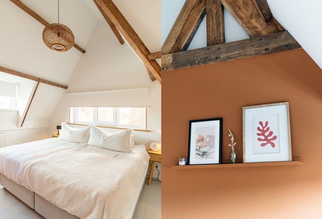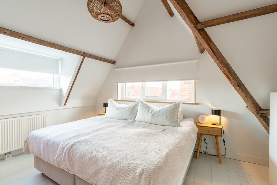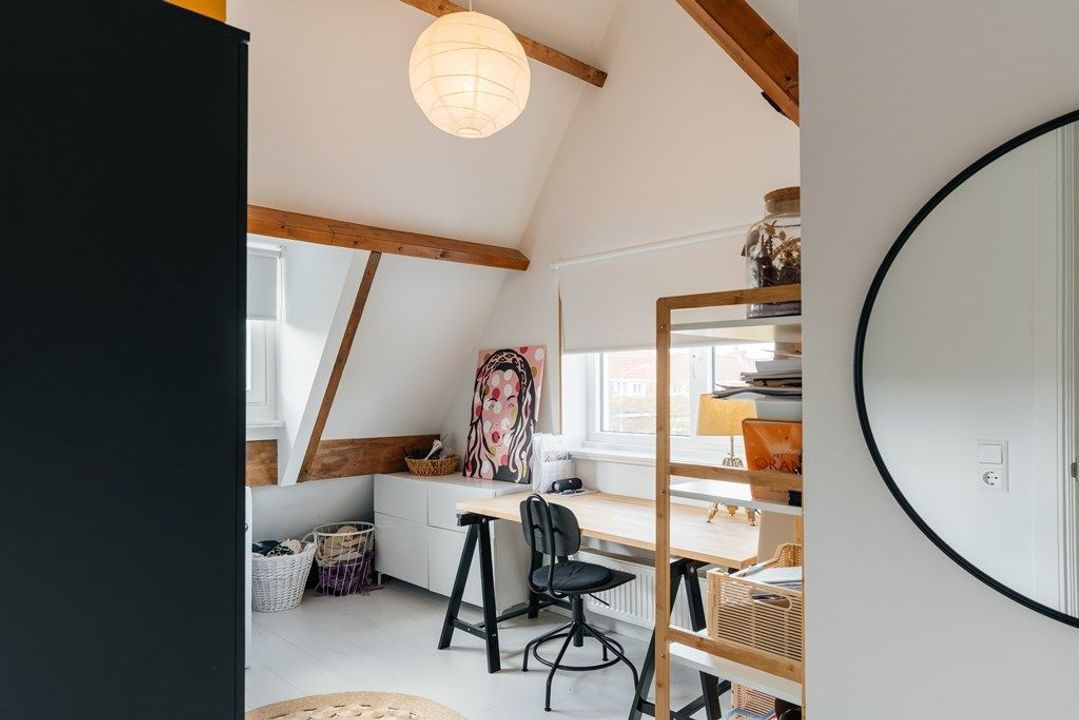 Op de tweede verdieping bevinden zich drie slaapkamers en de badkamer. De verdieping kenmerkt zich door de prachtige houten balken, die tijdens de renovatie zorgvuldig zijn gerestaureerd. In diezelfde periode is de volledige verdieping aangepakt: het dak en de vliering zijn geïsoleerd, en zowel de badkamer als het toilet zijn compleet vernieuwd. De plafonds reiken hier tot 3,72 meter hoogte, wat de kamers extra ruimtelijk en karaktervol maakt. Alles is toen met oog voor detail en kwaliteit uitgevoerd, waardoor de verdieping nu modern comfort combineert met bijzonder karaktervolle elementen.