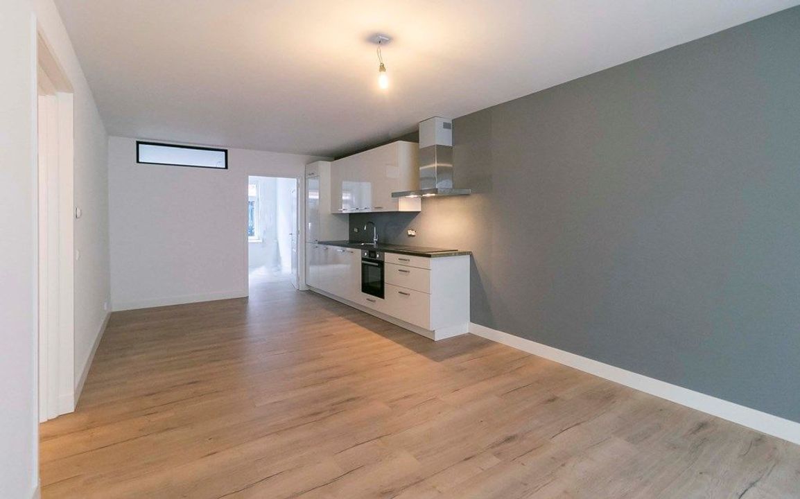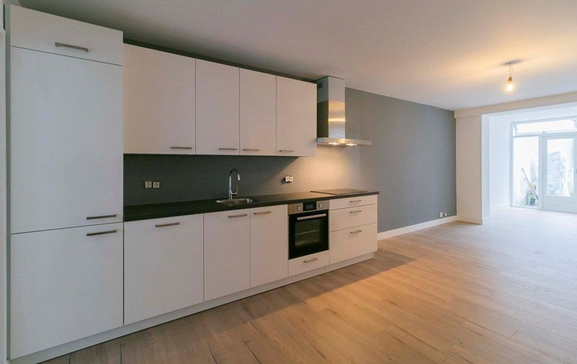 This beautiful ground floor apartment has a living room with a fully equipped modern open kitchen. From the living room, you have access to the back garden of approximately 50 m2. Here you can enjoy the afternoon and evening sun. The apartment has a spacious bedroom at the front and a second bedroom at the rear. From the hall, you have access to the bathroom and a separate toilet. In the hall, you also have a separate room for the washing machine and dryer.