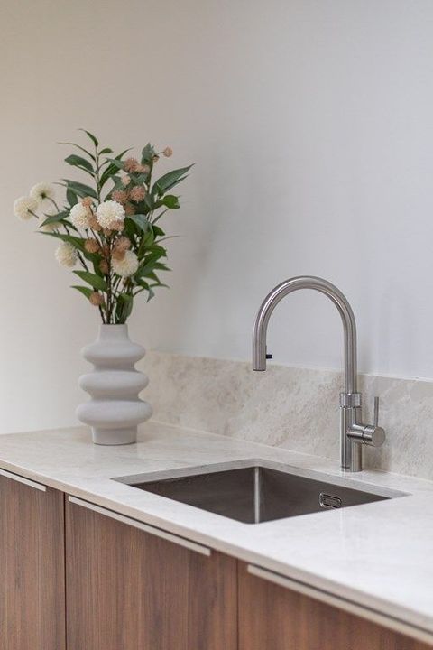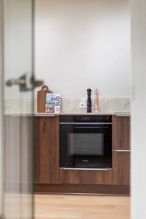 The living area is on the third floor, offering plenty of natural light and a sense of openness. The centrally positioned kitchen connects to the dining room, from where French doors open onto the sunny roof terrace. At the front, you’ll find the spacious living room – a perfect place to relax. A second separate toilet is also located on this floor.