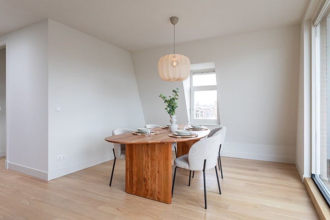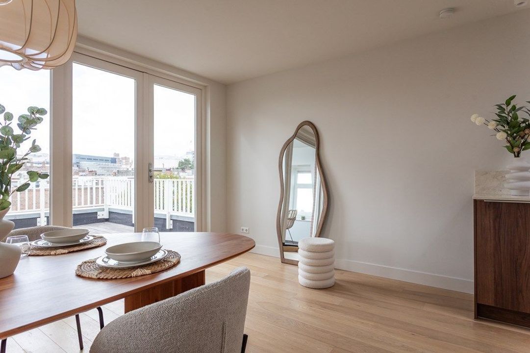 Het woongedeelte bevindt zich op de derde verdieping, waardoor je hier profiteert van veel licht en een vrij gevoel. De keuken ligt centraal in de woning en sluit aan op de eetkamer, vanwaar je via openslaande deuren toegang hebt tot het zonnige dakterras. Aan de voorzijde bevindt zich de royale woonkamer, een fijne plek om te ontspannen. Ook op deze verdieping is een apart toilet aanwezig.