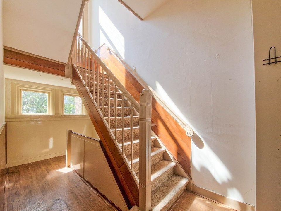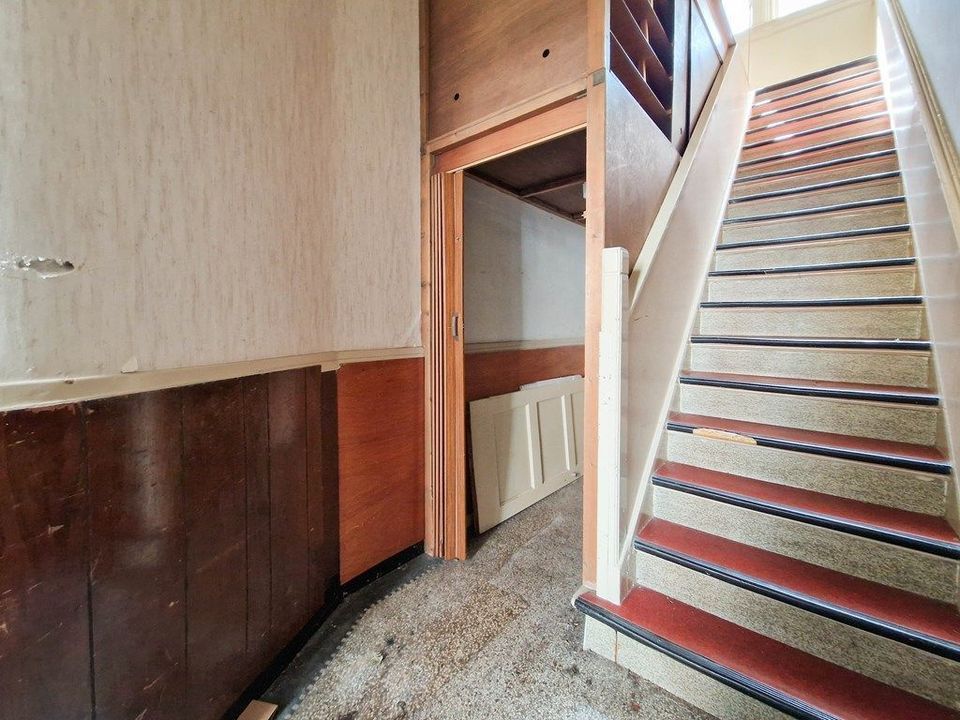 Private entrance from the street with hallway, storage area, and staircase to the first floor.