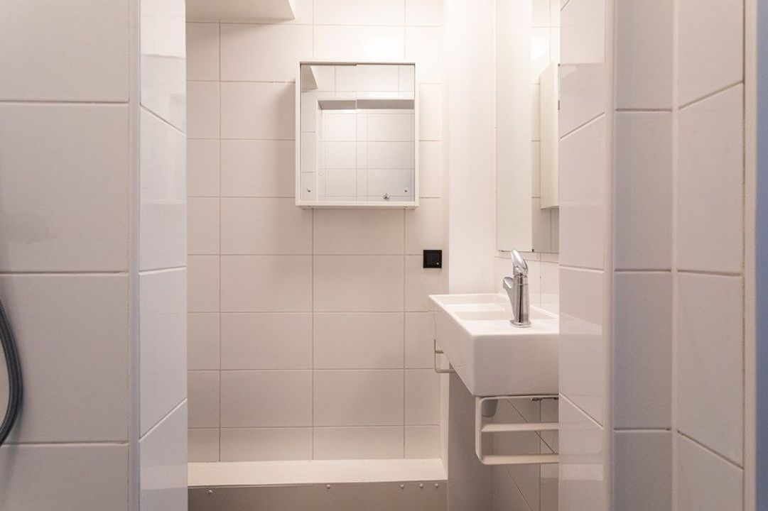 Aan de achterzijde bevindt zich de slaapkamer met toegang tot het terras. De badkamer is voorzien van een toilet, douche en wastafel.