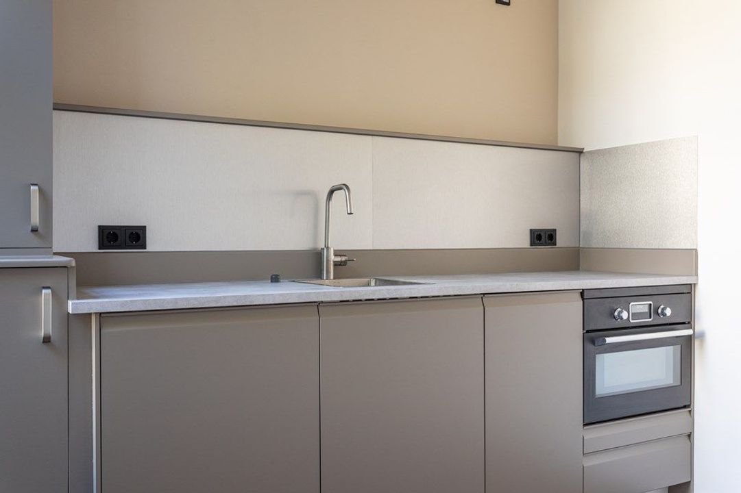 Het appartement is recent gerenoveerd en praktisch ingedeeld. De woonkamer beschikt over een plafondhoogte van circa 2,85 meter, wat zorgt voor een ruimtelijk gevoel. De open keuken sluit hier direct op aan.