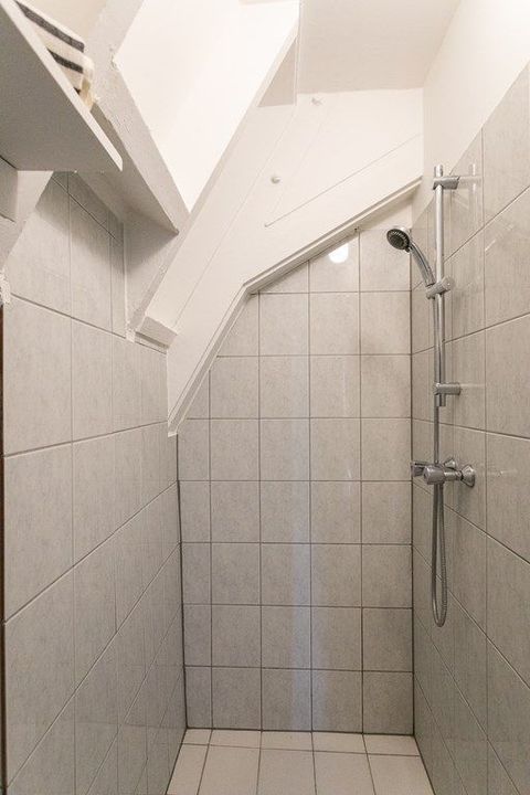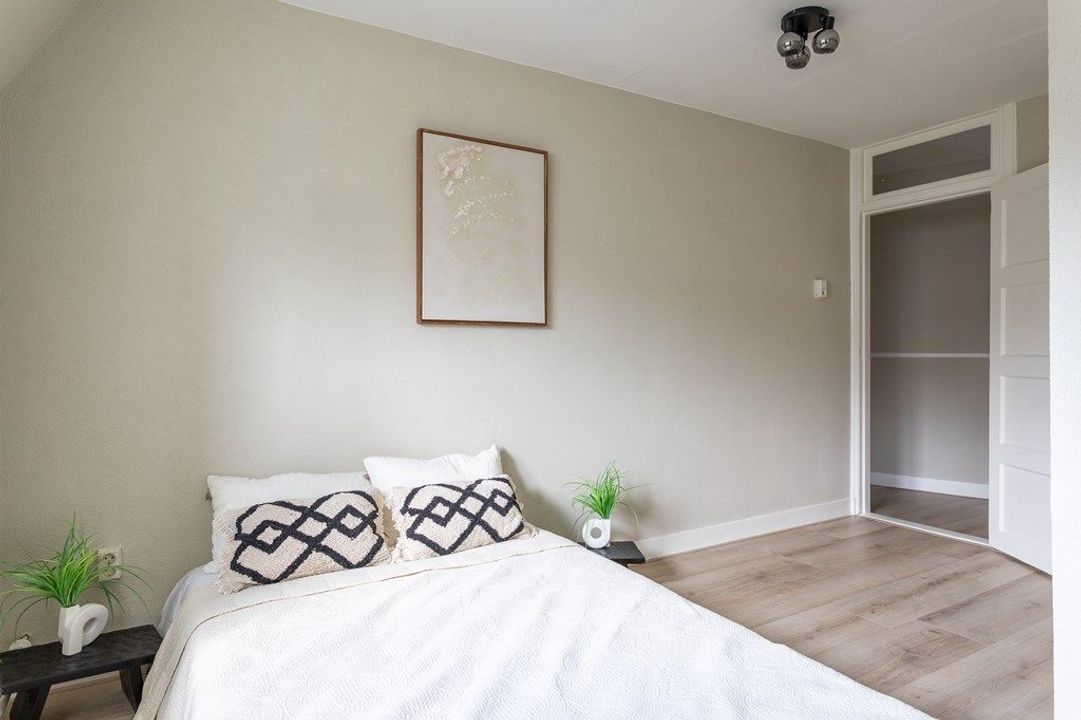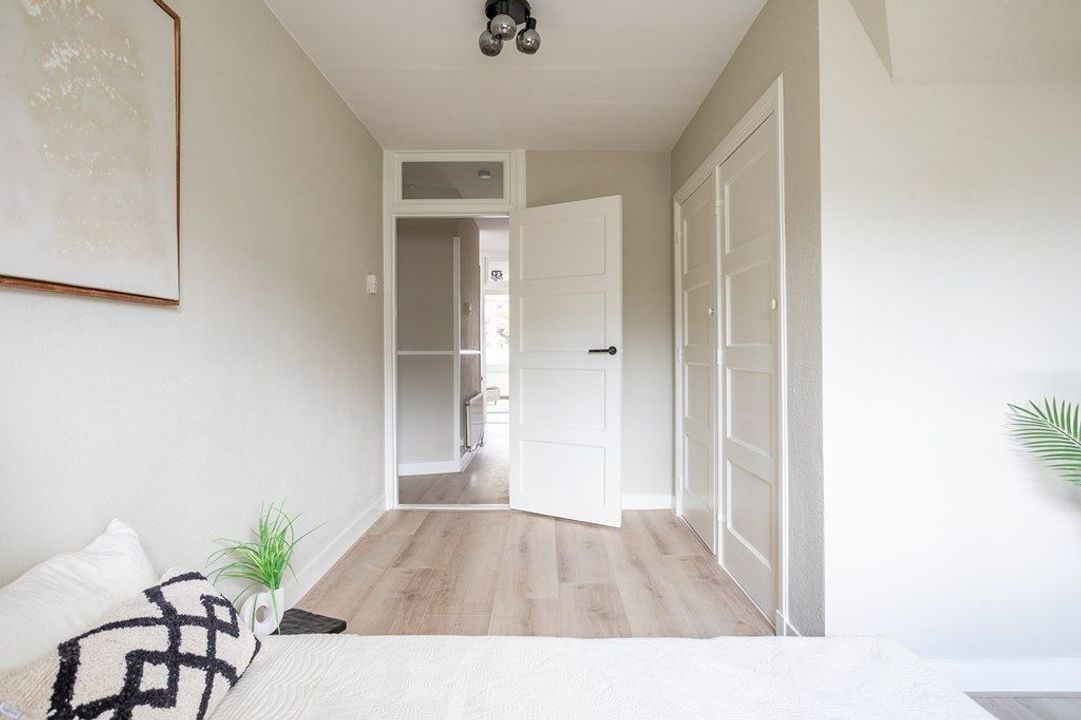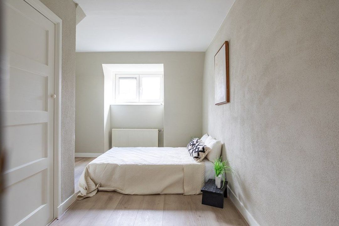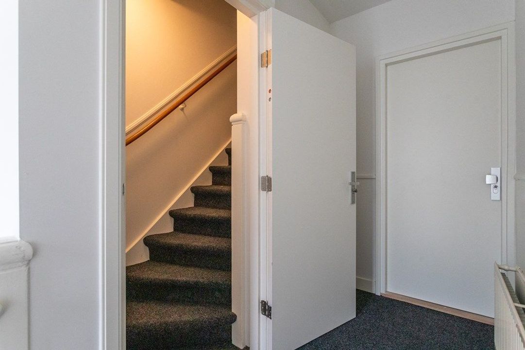 Gezamenlijke entree vanaf straatniveau. Op de derde verdieping: entree met hal en vaste kasten. Aan de voorzijde de lichte woonkamer en vrij uitzicht. Centraal in de woning een separate keuken. Aan de achterzijde twee slaapkamers: een ruime hoofdslaapkamer (ca. 12 m²) en een tweede kamer (ca. 7 m²), ideaal als werk- of logeerkamer. Badkamer met douche, wastafel en toilet. Meerdere vaste kasten zorgen voor handige bergruimte.