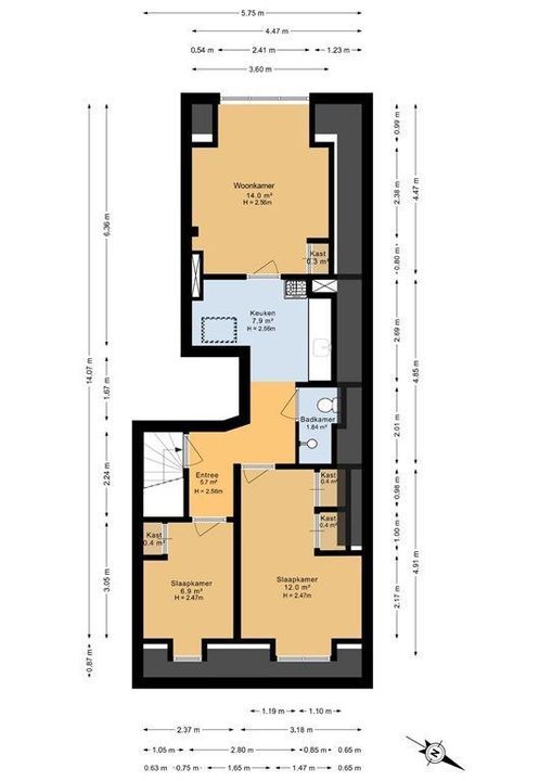 -Gebruiksoppervlakte wonen: 56,6 m² (conform NEN 2580, meetrapport aanwezig)