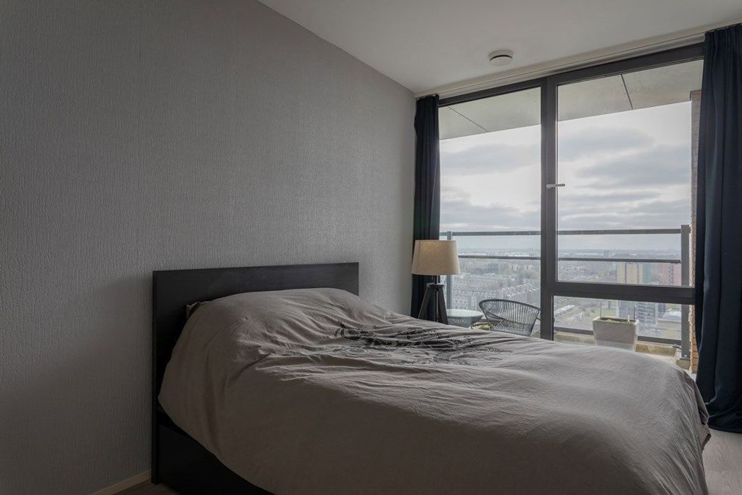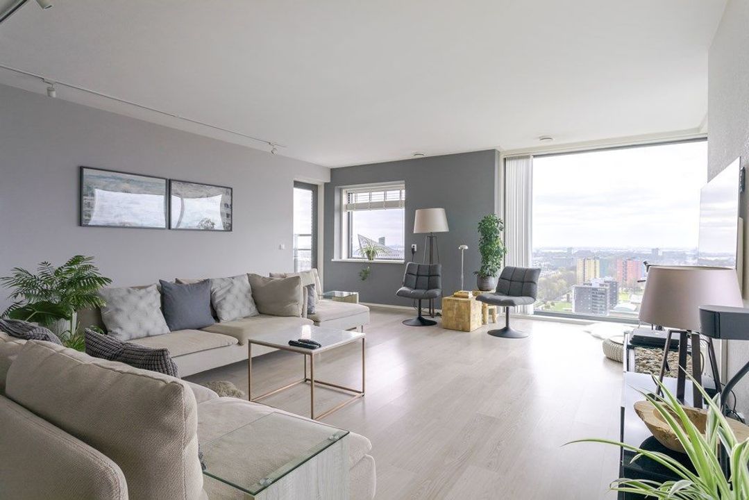 In the striking residential tower “Pharos”, located on the 21st floor, you will find this luxurious 3-room corner apartment with a magnificent view over The Hague’s skyline and the surrounding area. This modern apartment offers two bedrooms, a covered sunny terrace, a private parking space in the secured underground garage, and a private storage room.