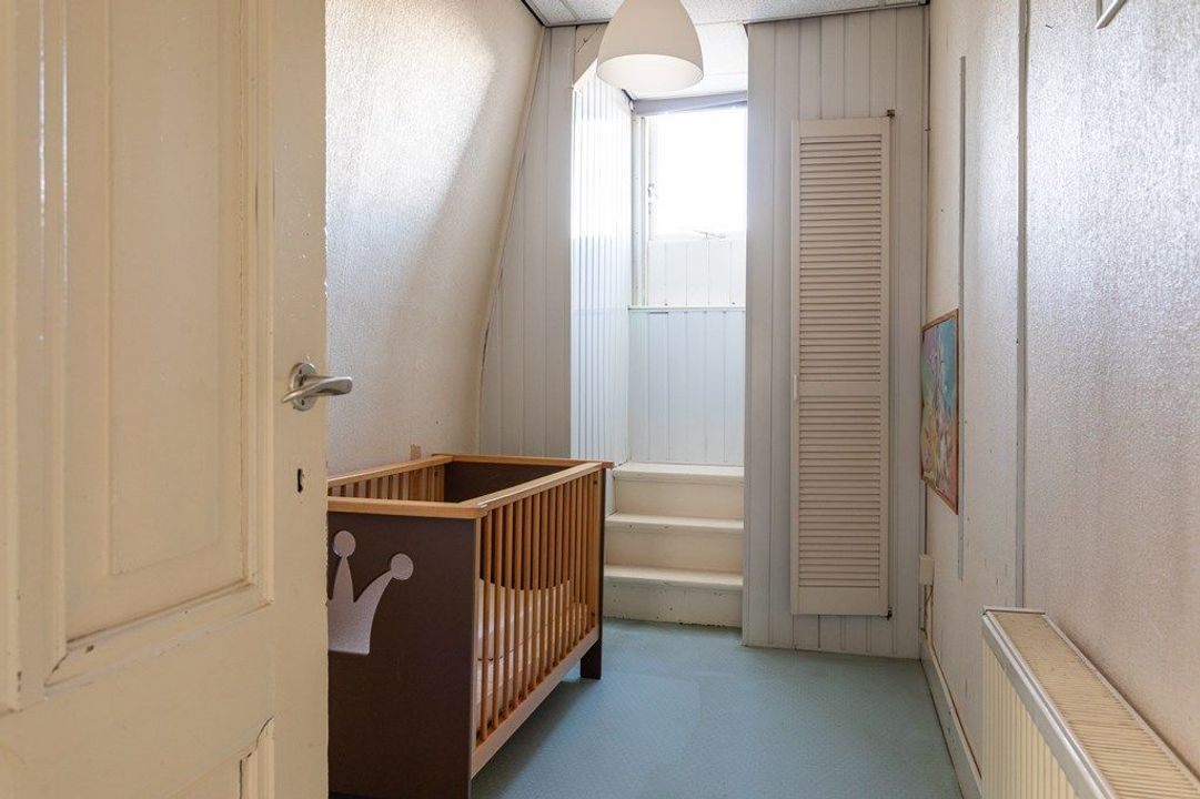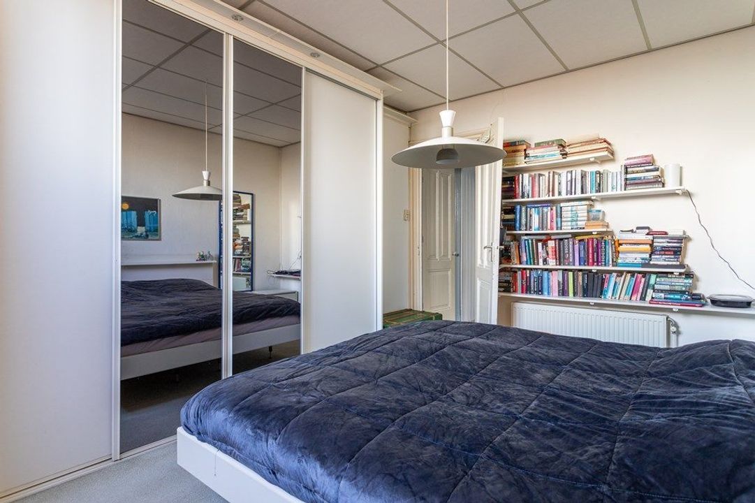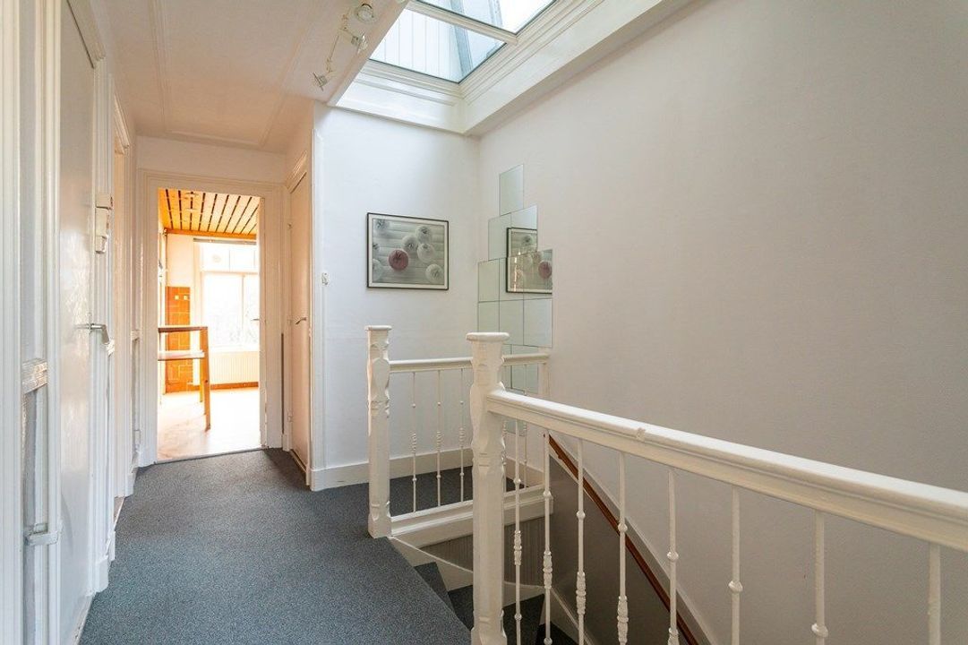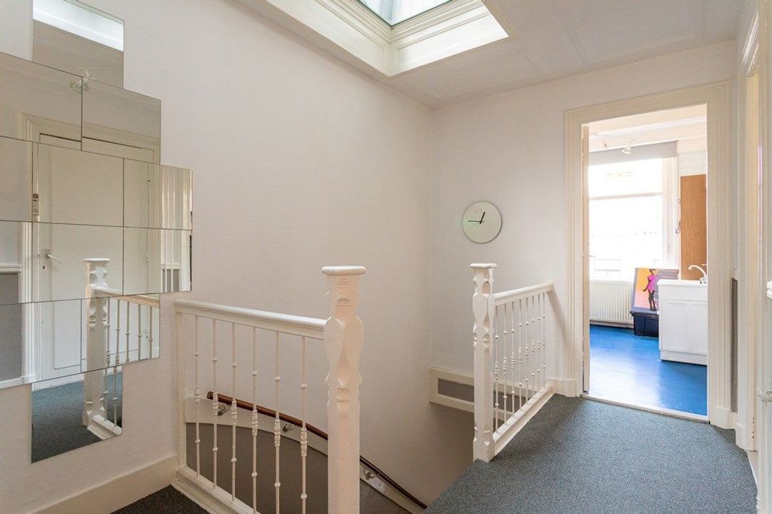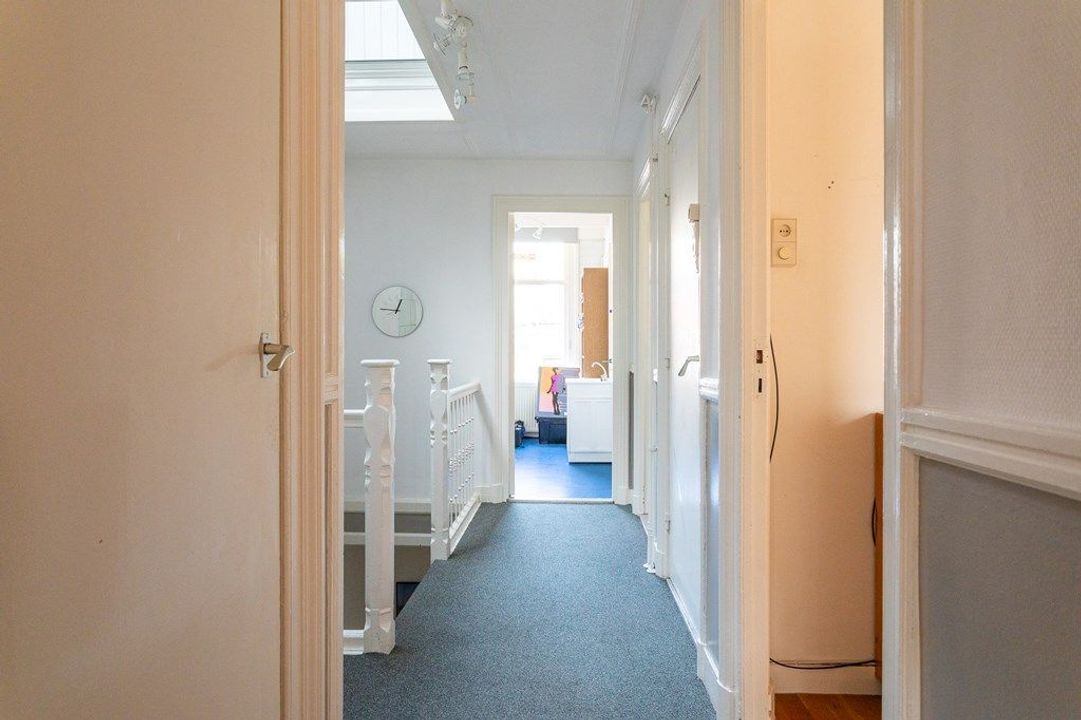 De trap naar de tweede verdieping brengt je bij drie goed bemeten kamers, waaronder een ruime slaapkamer aan de achterzijde met openslaande deuren naar een balkon. Deze verdieping voelt prettig en overzichtelijk aan, met genoeg plek om meerdere slaapkamers, een werkkamer of combinaties daarvan te realiseren.
