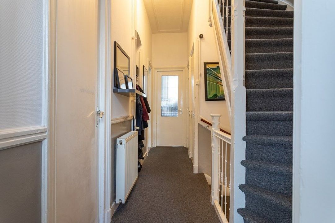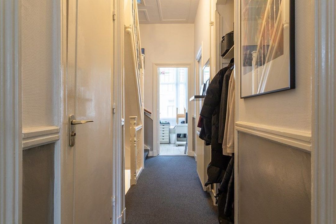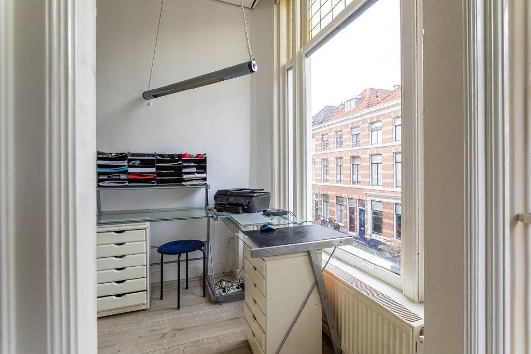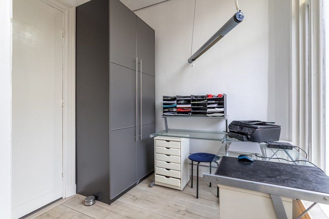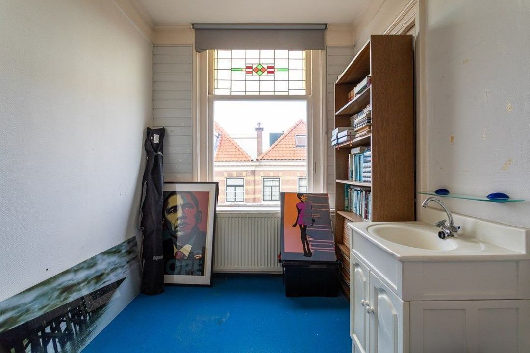 De trap naar de tweede verdieping brengt je bij drie goed bemeten kamers, waaronder een ruime slaapkamer aan de achterzijde met openslaande deuren naar een balkon. Deze verdieping voelt prettig en overzichtelijk aan, met genoeg plek om meerdere slaapkamers, een werkkamer of combinaties daarvan te realiseren.