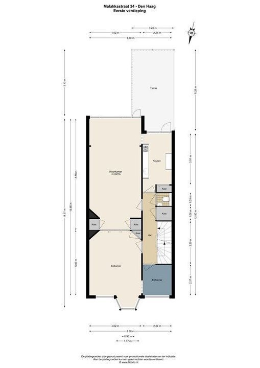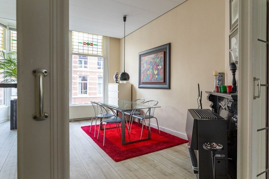 Via de eigen entree op straatniveau ga je naar de eerste verdieping, waar de royale woon- en eetkamer met een breedte van ruim 4 meter zich over vrijwel de gehele diepte van deze woonlaag uitstrekt. De ruimte is licht en ruimtelijk, met aan de achterzijde de keuken die toegang biedt tot een fijn terras, ideaal voor een ochtendkoffie of een borrel in de avondzon en met een mooi uitzicht over de Haagse Beek.
