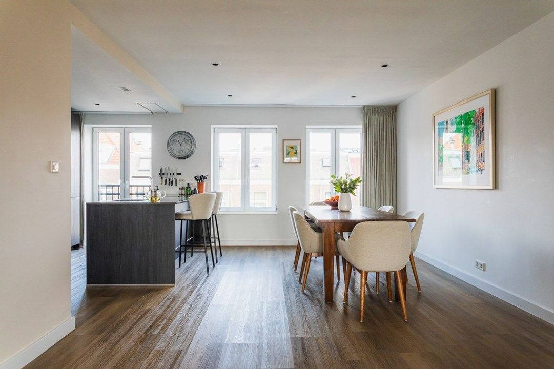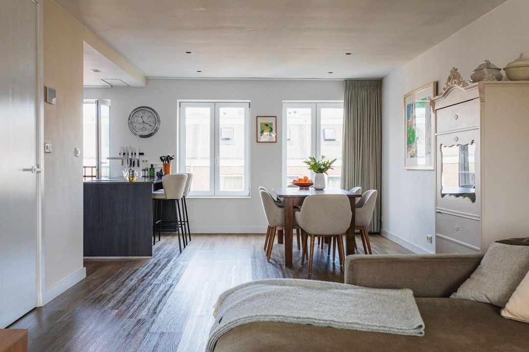 Located in one of The Hague’s most popular neighbourhoods, this generous four-room upper apartment offers a sunny roof terrace and high-quality finishes throughout. The home blends the charm of an 1870 townhouse with the comfort and efficiency of modern living. The Zeeheldenkwartier is known for its lively atmosphere, cosy cafés, boutique shops and the weekly market at Prins Hendrikplein. The city centre is within walking distance, and public transport is conveniently close by.