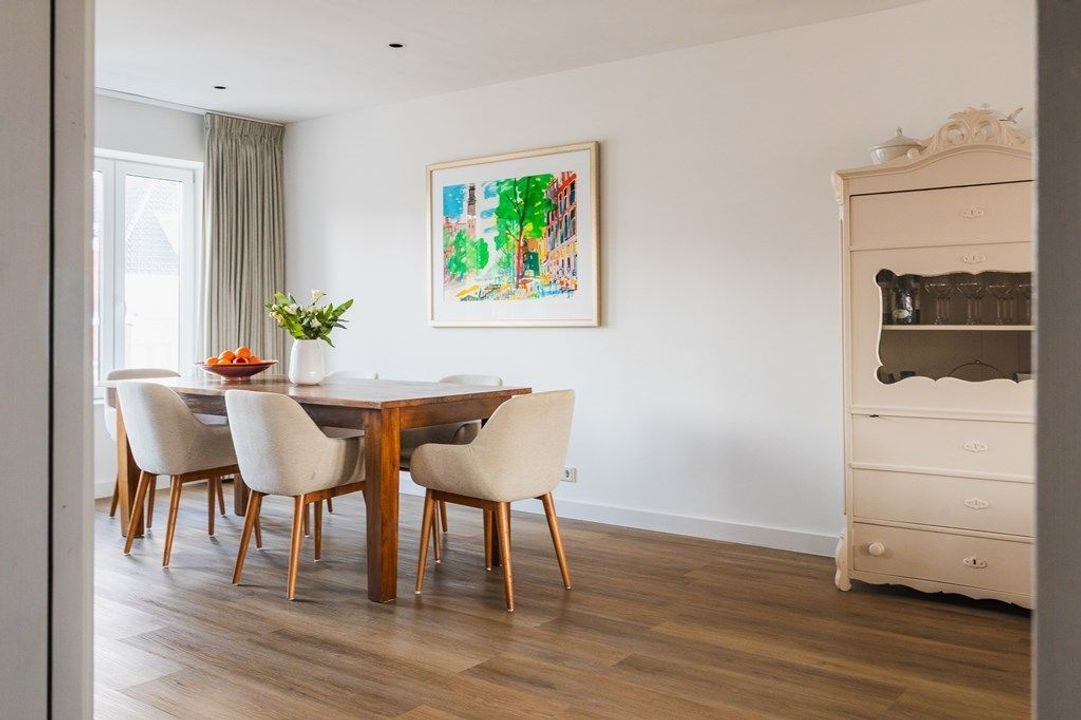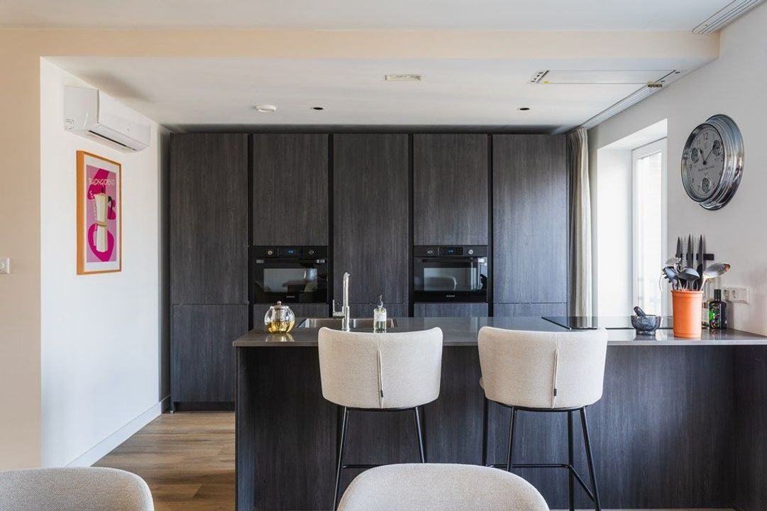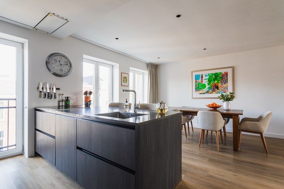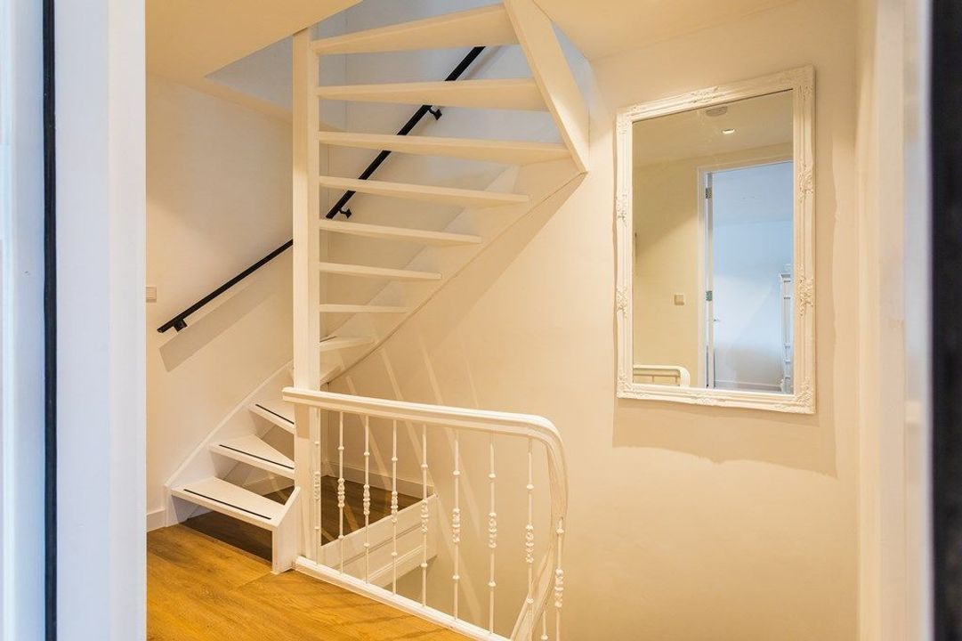 Via de entree op de begane grond en de gemeenschappelijke trap bereik je de eerste verdieping, waar het appartement een eigen opgang heeft. De originele spijlentrap leidt naar de woonverdieping, waar een ruime hal toegang geeft tot een ruime en lichte woonkamer. Grote raampartijen aan voor én achterzijde zorgen voor een open en aangename sfeer. Aan de achterzijde ligt de open keuken met kookeiland en bar, perfect om vrienden te ontvangen. De keuken is voorzien van een inductiekookplaat met geïntegreerde afzuiging, diverse inbouwapparaten en veel bergruimte. Aan de voorzijde bevindt zich een ruime zithoek en een slaapkamer die momenteel wordt gebruikt als werkkamer/logeerkamer.
