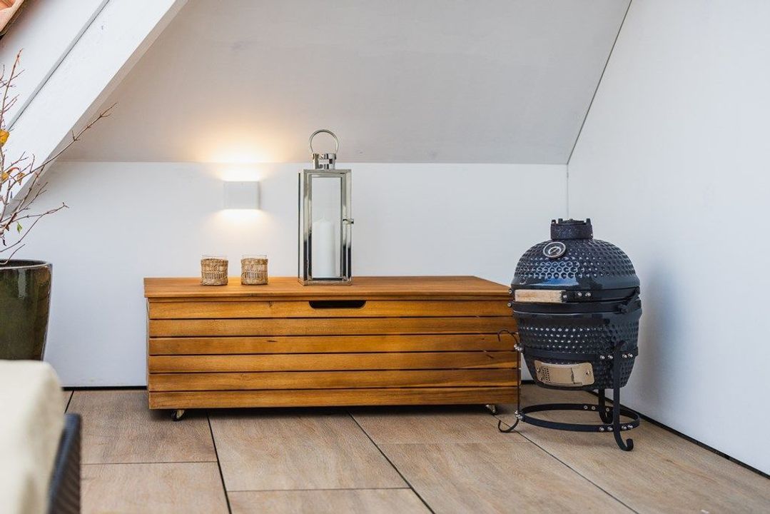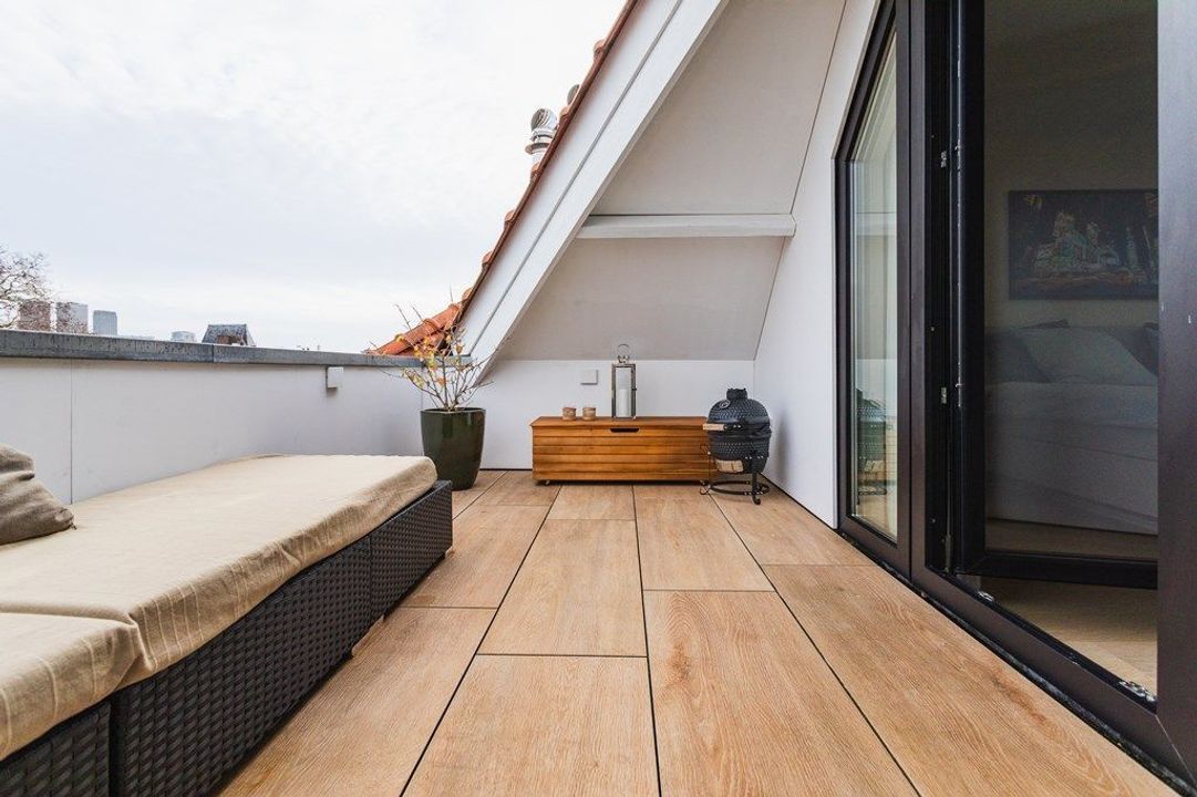 From the master bedroom there is access to the sunny roof terrace, offering open views towards the historic city centre, the Paleistuin and the Royal Stables. A unique and tranquil spot in the middle of the vibrant city.