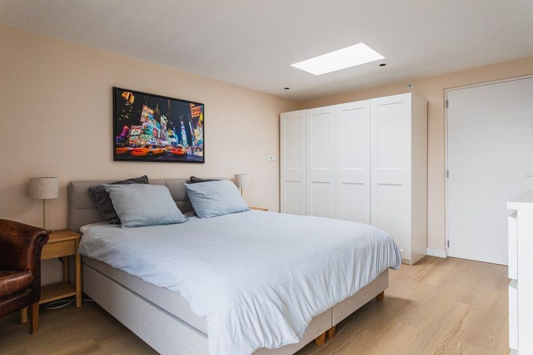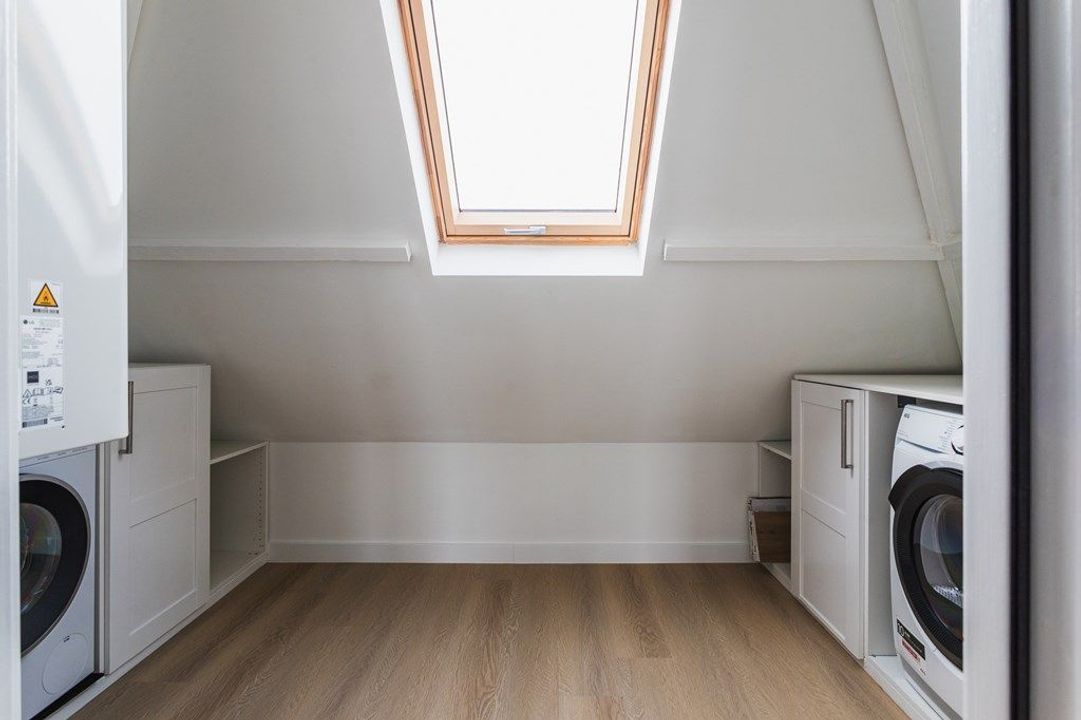 De bovenste verdieping biedt ruimte aan de royale hoofdslaapkamer, die direct is verbonden met de moderne badkamer met ligbad, ruime inloopdouche, tweede toilet en een stijlvol wastafelmeubel. De derde slaapkamer aan de voorzijde wordt momenteel gebruikt als een praktische en ruime waskamer met grote bergruimte, waardoor deze verdieping optimaal is ingericht voor dagelijks comfort. Vanuit de hoofdslaapkamer is tevens toegang tot het zonnige dakterras, waar je geniet van een vrij uitzicht richting het oude centrum, de Paleistuin en de Koninklijke Stallen. Een unieke en rustige plek midden in de bruisende stad.